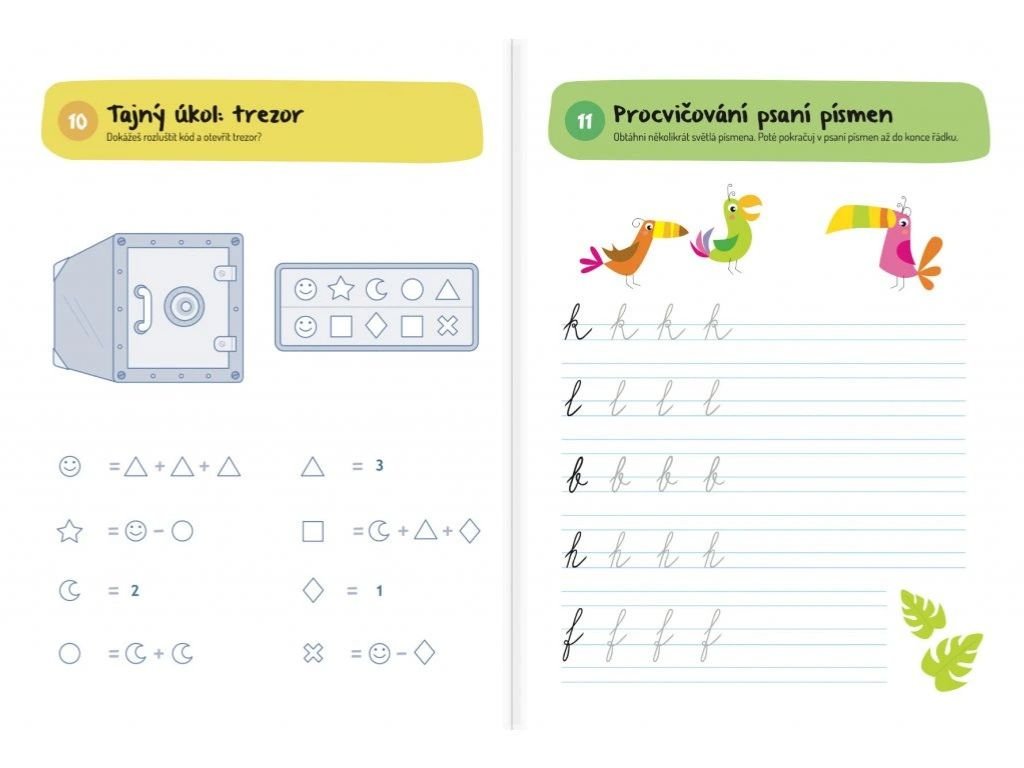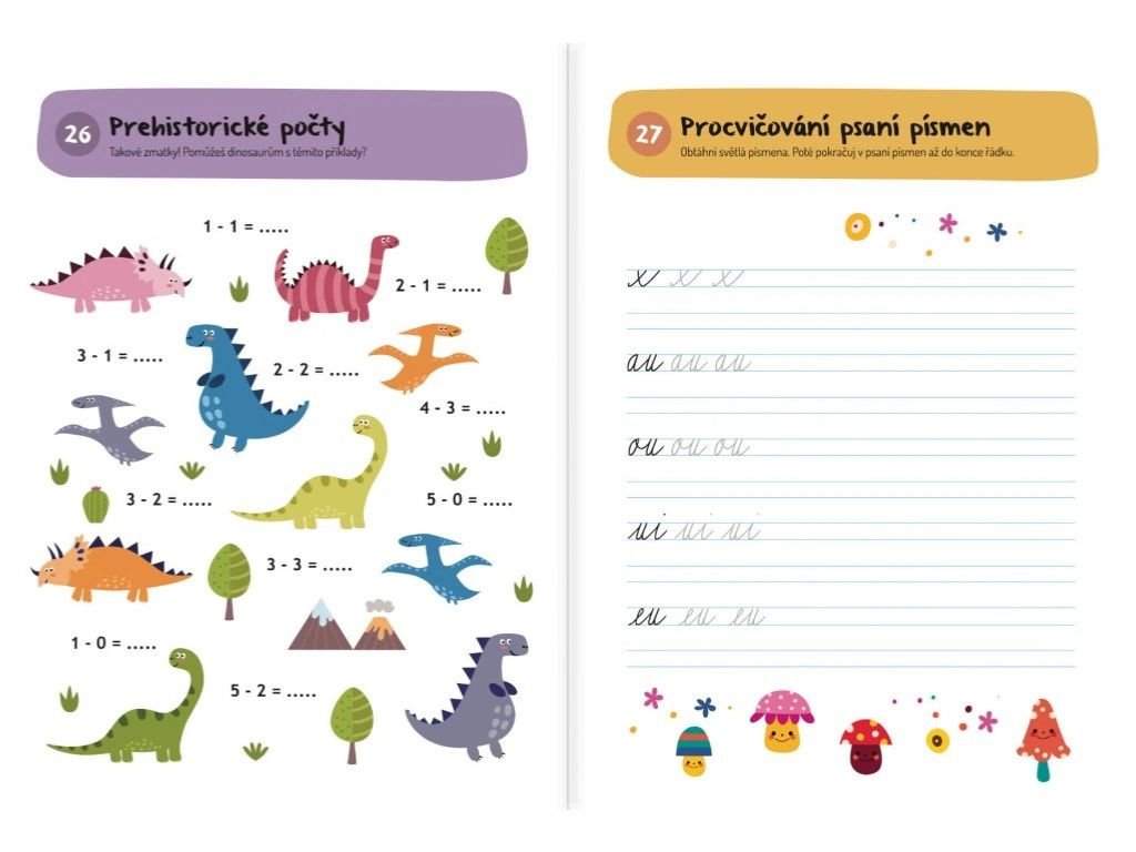 Příklady na sčítání a odečítání, hádanky, osmisměrky a spoustu dalších her a úkolů najdeš v tomto zábavném sešitu. Úlohy hýří barvami a hravým a pozvolným způsobem děti seznámí se složitějšími úlohami a hádankami. Cvičení jsou zaměřená na procvičování psaní slov a celých vět, základní početní příklady, spojování i vybarvování. Sešit obsahuje přesně 100 her, u kterých vaše děti stráví zábavné chvíle a zapojí svou kreativitu a představivost.