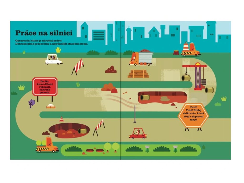 Připravte se s nejrůznějšími vozidly a stroji vyrazit na staveniště, na rušné silnice i do rozbouřených vln. V této knize aktivit najdete bludiště, hledání rozdílů či úlohy s počítáním. Na každé straně budou děti kreslit, vybarvovat, řešit úkoly a nalepovat pěnové samolepky, kterými mohou doplnit jednotlivé scenérie podle zadání nebo podle vlastní fantazie!