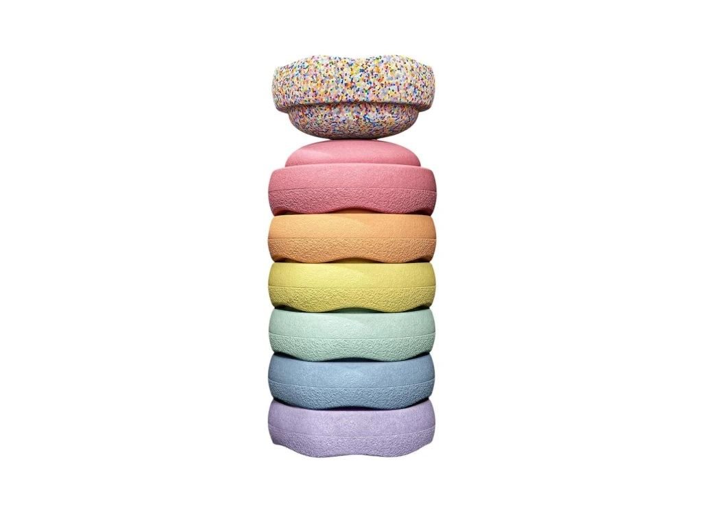 Nechte se okouzlit pastelovým světem pohybu s Stapelstein® Special Original Mini rainbow pastel – limitovanou sadou šesti mini kamenů v harmonických pastelových odstínech + jeden navíc v oblíbené confetti. Tento set je jako stvořený pro malé průzkumníky, kteří objevují rovnováhu, barvy a kreativní hru.