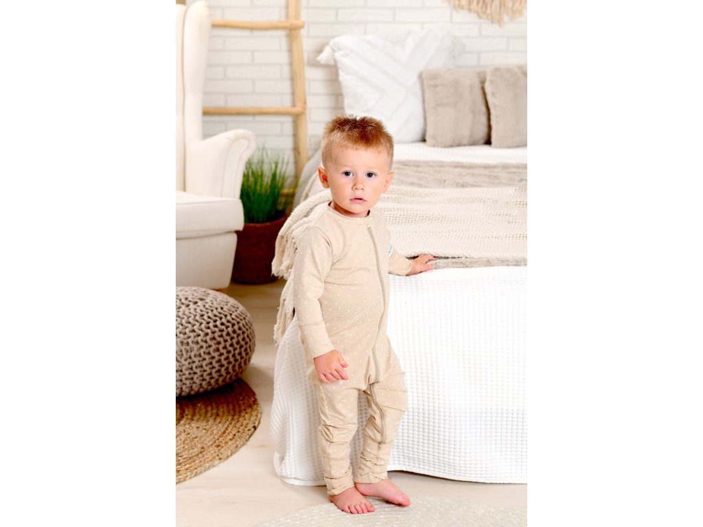 Moniel Dětský rostoucí overal Medvěd Dots béžová
