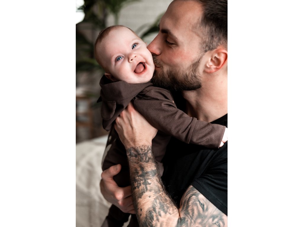 Rukávy a nohavice jsou zakončeny rostoucími náplety, které lze jednoduše ohrnout nebo povolit podle aktuální velikosti dítěte. Díky tomu overal vydrží minimálně dvě běžné velikosti. Praktické zapínání usnadňuje oblékání i přebalování a ocení ho rodiče při každodenní manipulaci s dítětem.
