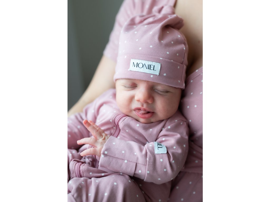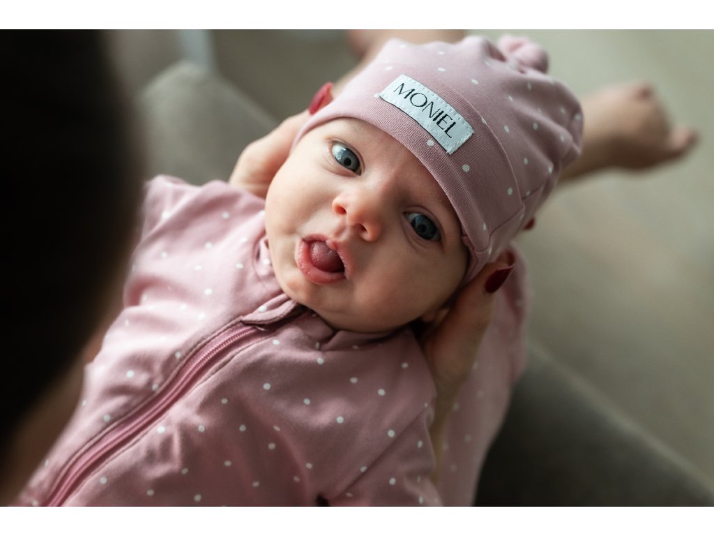 Novorozenecká čepička od Monielu je perfektní pro miminka během prvních dnů. Čepička je elastická, takže skvěle drží na hlavičce, nepadá a nedělá otlaky. Uzel na čepičce lze utáhnout dle potřeby a tím čepičku zmenšit nebo naopak zvětšit podle velikosti miminka a rychlosti jakou roste. Uzlík je nejen praktický, ale miminkům také úžasně sluší.