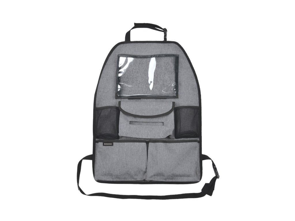 Pevný a omyvatelný materiál navíc chrání zadní stranu sedadla před okopáním a ušpiněním. Organizér se snadno připevní pomocí univerzálních úchytů a je kompatibilní s většinou automobilových sedadel.