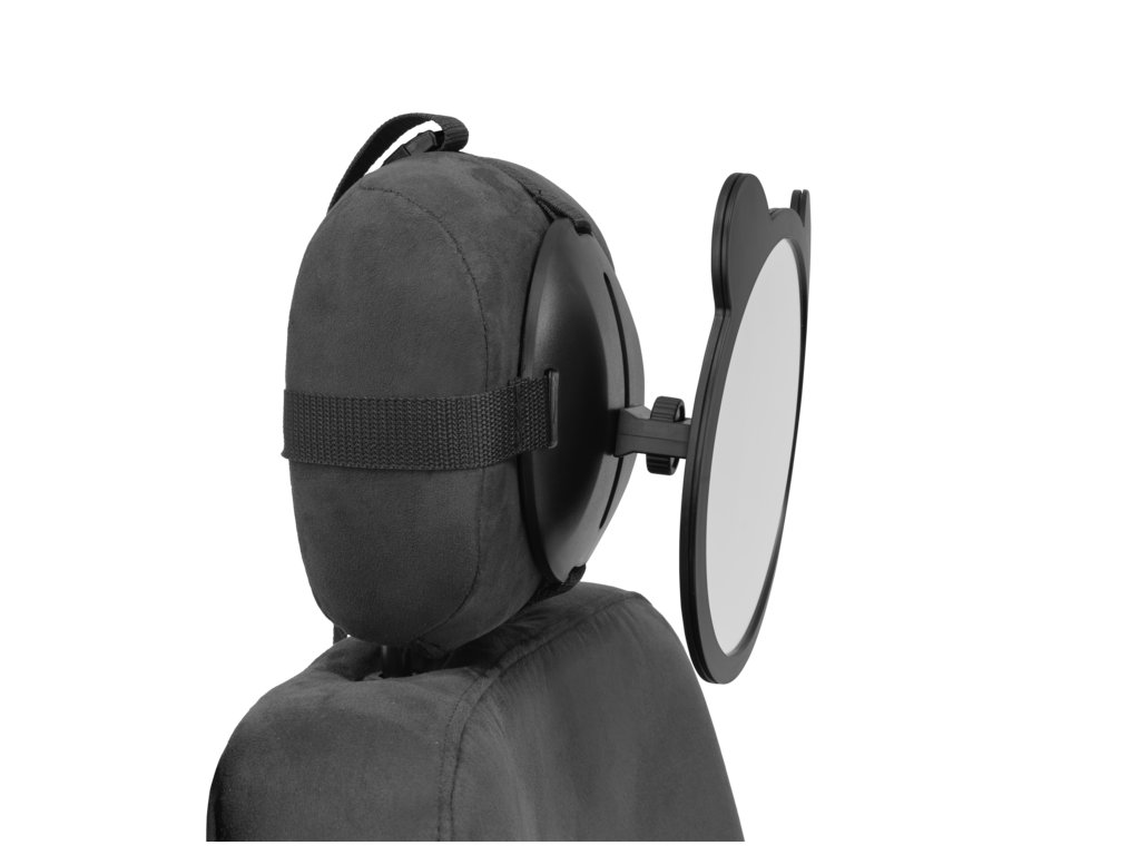 Zrcátko se jednoduše a pevně připevní k opěrce hlavy zadního sedadla pomocí univerzálního systému uchycení. Díky nastavitelnému kloubu jej lze snadno natočit do ideálního úhlu tak, abyste měli dítě vždy perfektně na očích.
