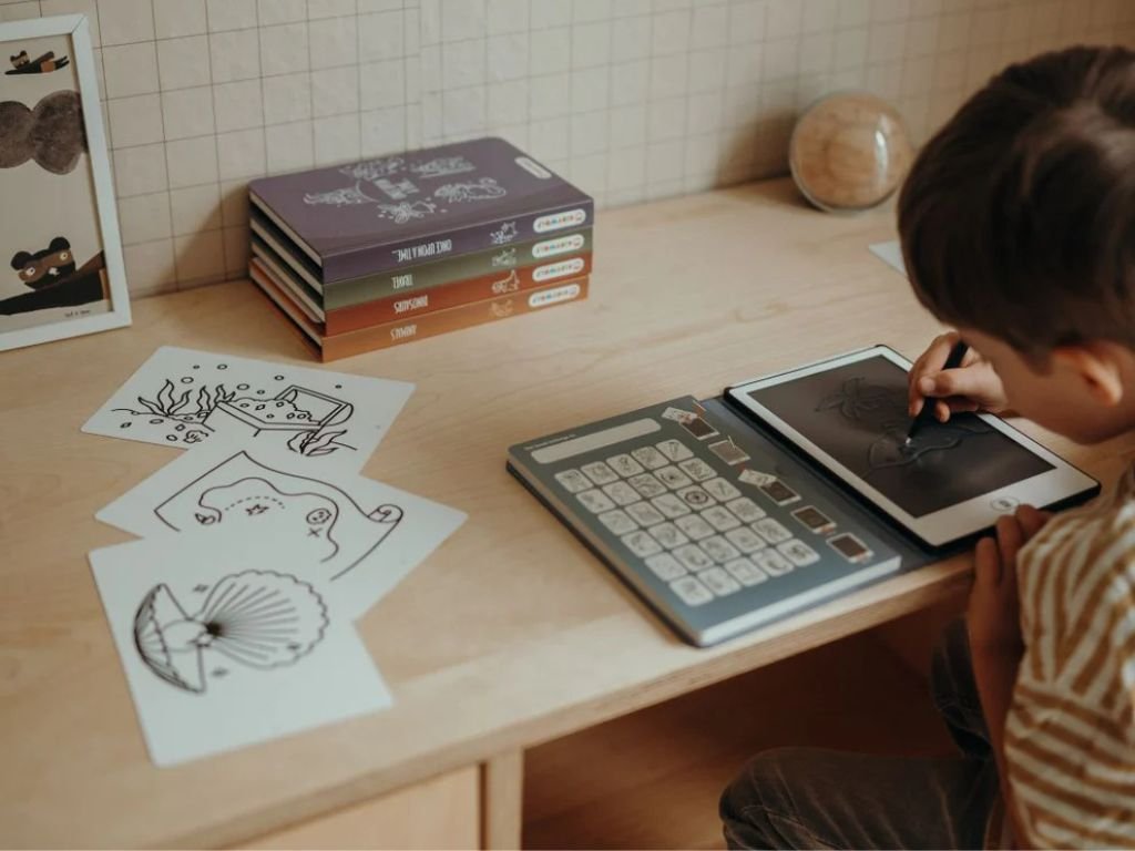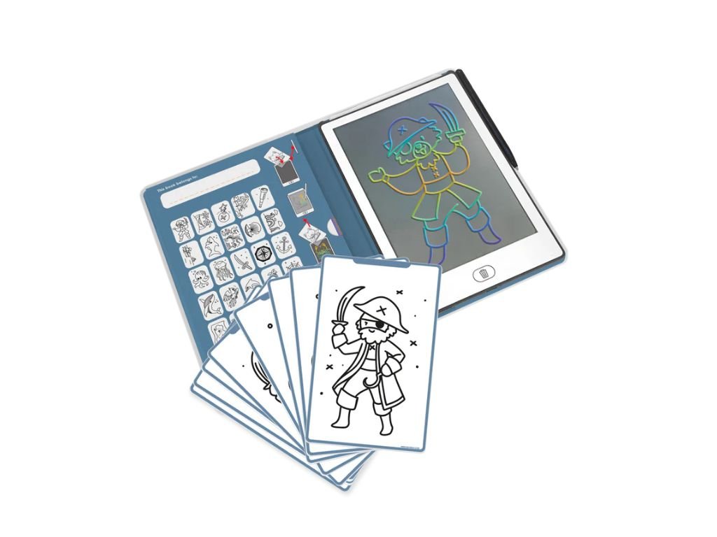 Součástí jsou pracovní karty, které děti vedou od jednoduchých tahů až po složitější motivy. Tablet podporuje soustředění, jemnou motoriku i samostatnou tvorbu.