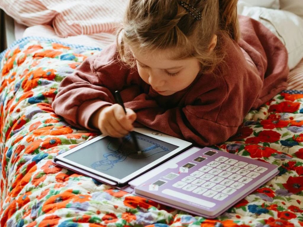 Součástí jsou pracovní karty, které děti vedou od jednoduchých tahů až po složitější motivy. Tablet podporuje soustředění, jemnou motoriku i samostatnou tvorbu.