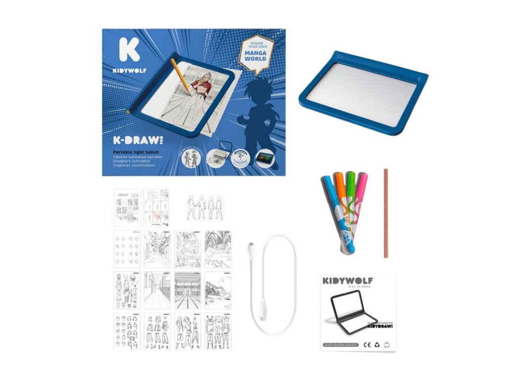 KidyDraw Pro – LED kreslící tablet je světelný a interaktivní kreslící tablet určený pro děti, který kombinuje kreativní kreslení, učení i zábavu. Díky inovativnímu LED displeji a neonovým fixům promění tvoření v originální zážitek bez běžné obrazovky.