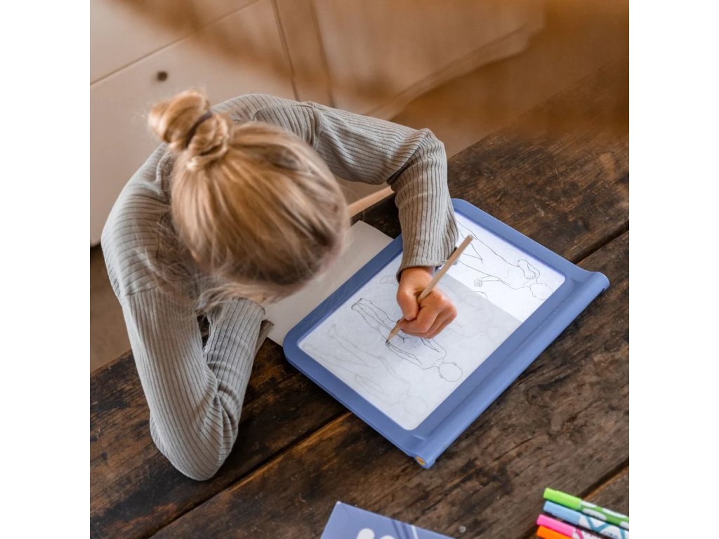 Kreslení pomáhá rozvíjet jemnou motoriku, představivost a základní psací dovednosti. Oboustranné provedení umožňuje kreslit na světelném LED panelu a zároveň využívat zadní neonovou tabuli s fluorescentními barvami.