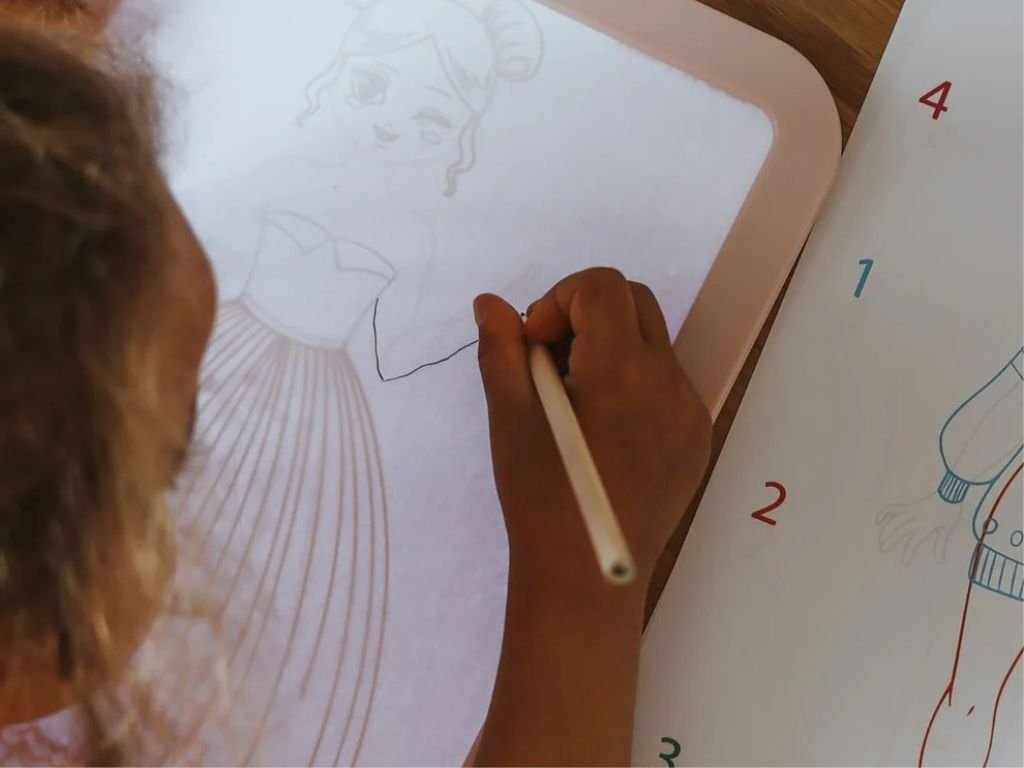 Kreslení pomáhá rozvíjet jemnou motoriku, představivost a základní psací dovednosti. Oboustranné provedení umožňuje kreslit na světelném LED panelu a zároveň využívat zadní neonovou tabuli s fluorescentními barvami.