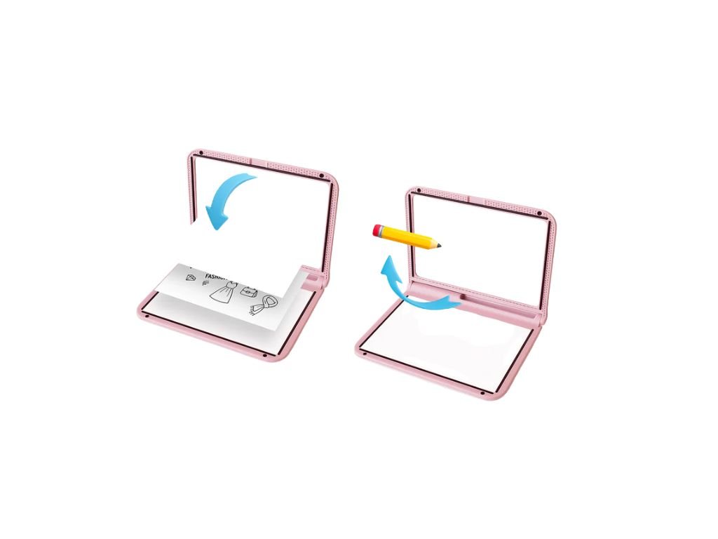 Tablet je vybaven měkkým LED displejem s třemi úrovněmi jasu, který usnadňuje reprodukci obrázků, písmen a čísel s přesností a radostí. Zadní neonová strana funguje jako tabule, která krásně zvýrazní tvary a barvy neonových fixů.