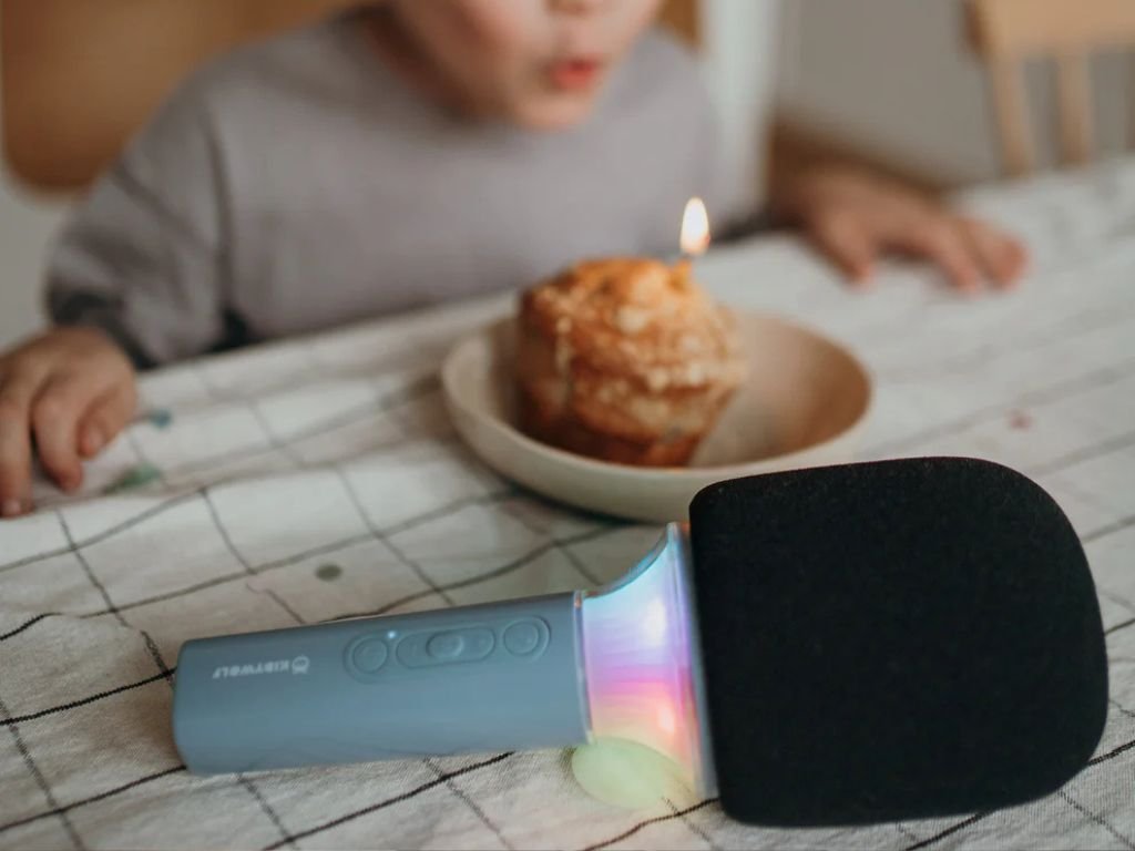 KidyMic – karaoke mikrofon přináší dětem hudební zábavu plnou světelných efektů, hlasových změn a volnosti při zpěvu. Díky vestavěnému reproduktoru i Bluetooth připojení promění každou píseň v malou show.