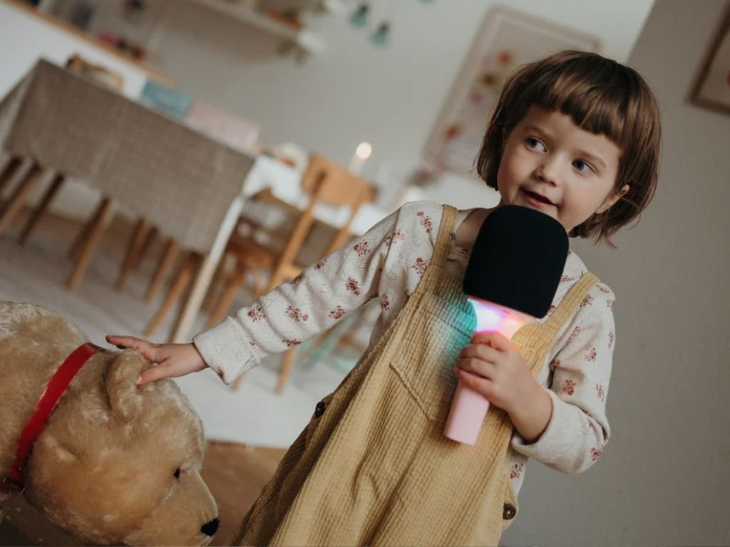 KidyMic – karaoke mikrofon přináší dětem hudební zábavu plnou světelných efektů, hlasových změn a volnosti při zpěvu. Díky vestavěnému reproduktoru i Bluetooth připojení promění každou píseň v malou show.