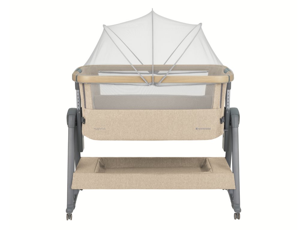 Součástí postýlky je pohodlná matrace, moskytiéra, prostorný úložný koš na pleny a další nezbytnosti i přepravní taška, díky které se Nanna snadno přenáší a hodí se i na cesty.