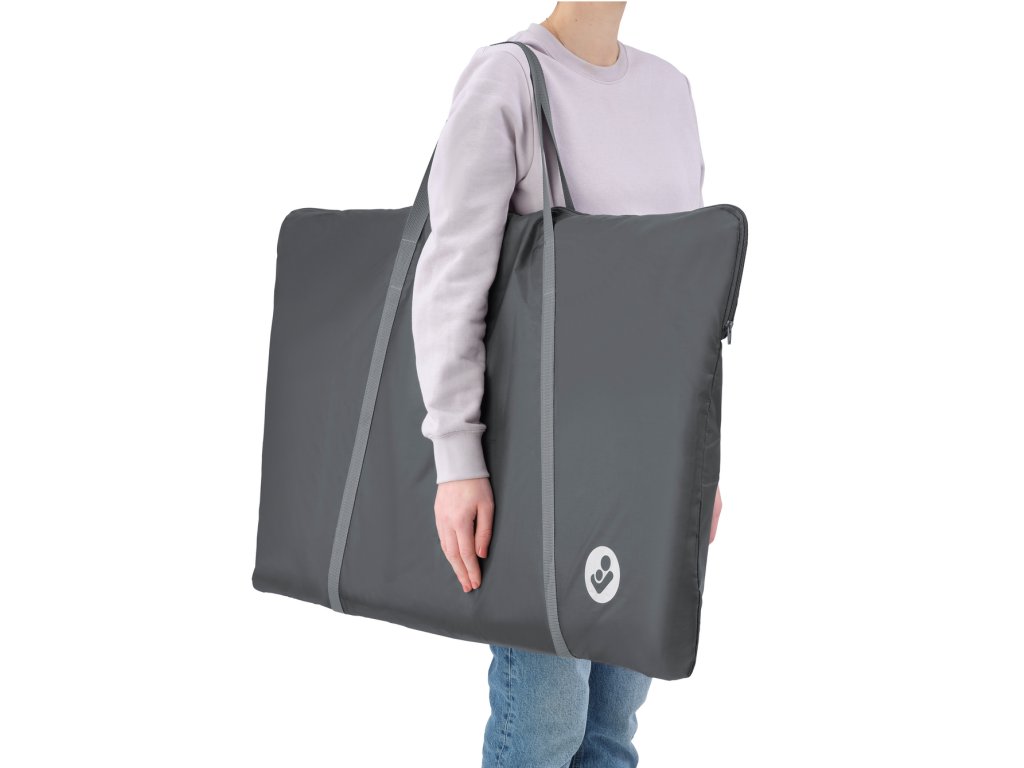 Součástí je kvalitní pěnová matrace a praktická cestovní taška – postýlku tedy využijete i na cestách, dovolené nebo u prarodičů. Potah Eco Care z 100% recyklovaných materiálů lze snadno sundat a prát v pračce.
