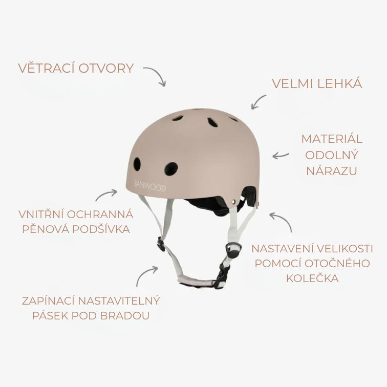 Banwood Eco helma kombinuje bezpečnost, pohodlí a udržitelnost. Je vyrobená z odolných recyklovaných materiálů ABS a doplněná ochrannou pěnovou výstelkou. Matné barevné provedení působí elegantně a nadčasově – ideální volba pro malé dobrodruhy.