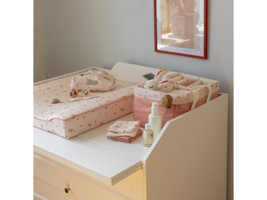 Je navržen tak, aby pasoval na většinu standardních balení vlhčených ubrousků. Praktické plátěné poutko na boku umožňuje snadné přenášení nebo zavěšení, takže je ideální nejen na přebalovací pult, ale i na cesty v přebalovací tašce.