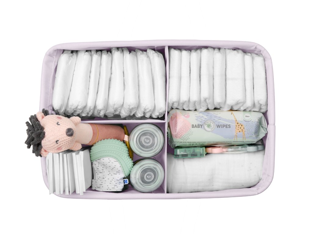 Uvnitř najdete přehrádky pro lepší organizaci a odnímatelnou přepážku, díky které si snadno zvolíte, jak bude vnitřní prostor rozdělený. Organizér má také pevná držadla, takže ho bez problémů přenesete z přebalovacího pultu do ložnice, obýváku nebo koupelny – přesně tam, kde ho zrovna potřebujete.