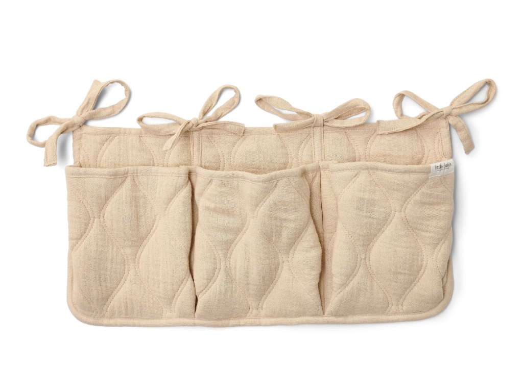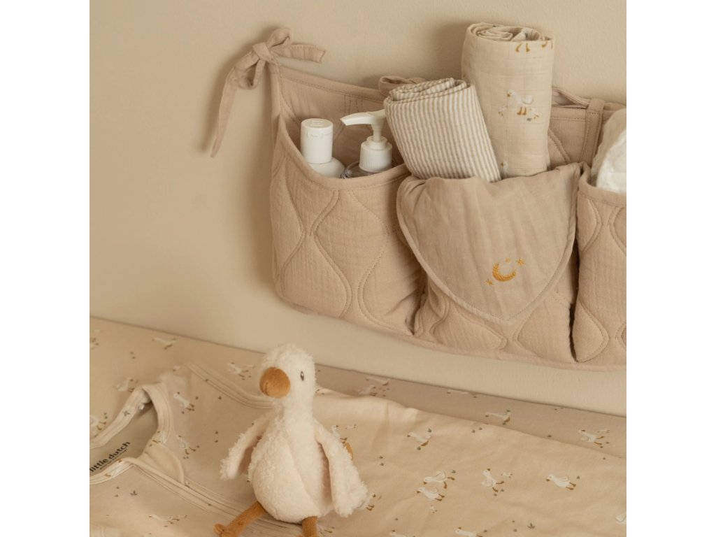 Praktické vázací šňůrky umožňují snadnou instalaci na přebalovací pult, postýlku či stěnu, takže se dokonale přizpůsobí vašemu prostoru. Neutrální béžový odstín se hodí do jakéhokoli interiéru a snadno se kombinuje s dalšími doplňky kolekce Little Dutch Pure.