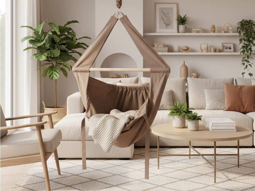 Součástí balení je vše potřebné pro zavěšení včetně pružin a pojistného lanka. Kidvak lze připevnit ke stropu nebo na speciální konstrukci (např. do dveří či ke zdi) a existují i samostatné stojany – stojan ani stropní kotva nejsou součástí dodávky.