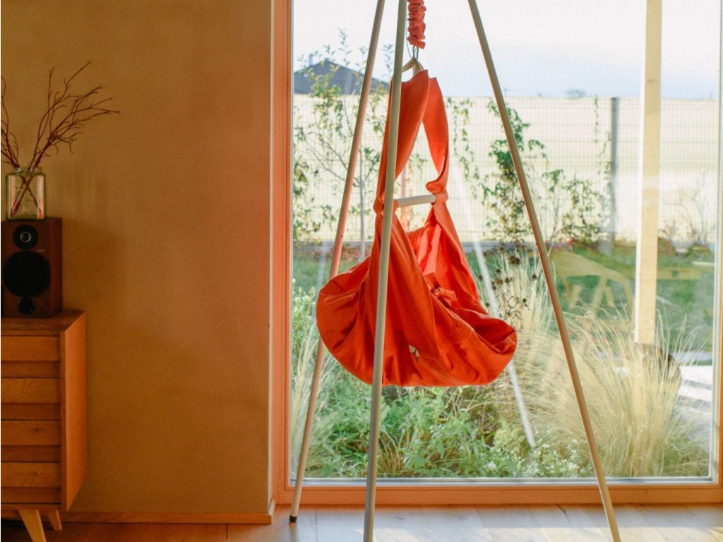 Součástí balení je vše potřebné pro zavěšení včetně pružin a pojistného lanka. Kidvak lze připevnit ke stropu nebo na speciální konstrukci (např. do dveří či ke zdi) a existují i samostatné stojany – stojan ani stropní kotva nejsou součástí dodávky.