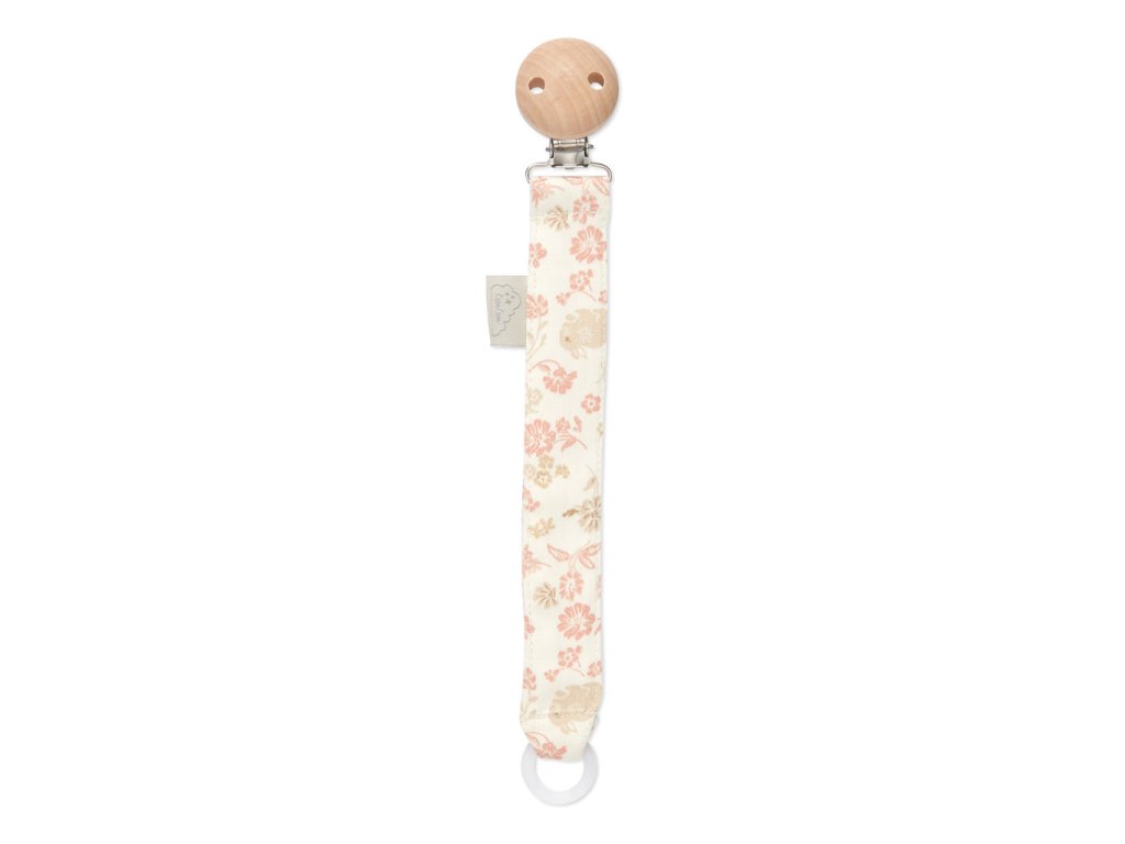 Klip má pevný kroužek ze 100% přírodního kaučuku, který dudlík bezpečně udrží. Uvnitř je výztuha (interfacing), aby se pásek při používání nekroutil, a nechybí ani chytrý dřevěný klip s kovovou částí bez obsahu niklu, který je šetrný a zároveň spolehlivý pro připnutí na oblečení dítěte.