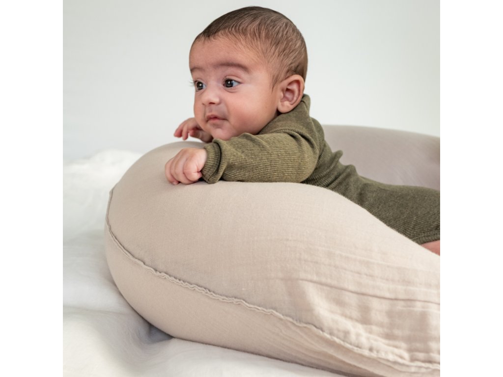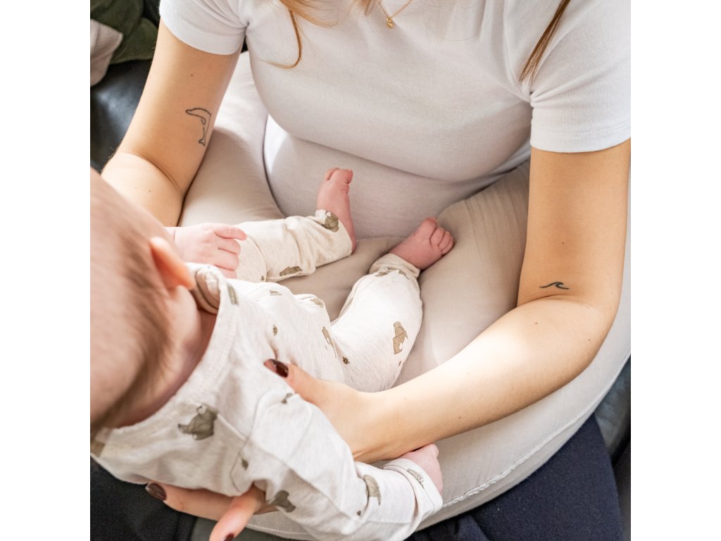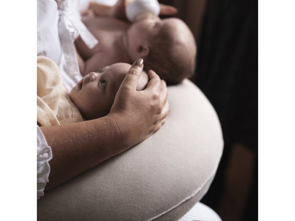 Díky své délce je vhodný i pro kojení dvojčat. Polštář se jednoduše uvazuje kolem těla, takže pevně drží na místě a umožňuje mamince snadno vstát, zvednout miminko nebo změnit polohu bez zbytečného nastavování. Je ideální například při nočním kojení, kdy potřebujete miminko rychle vzít z postýlky a opět pohodlně uložit.