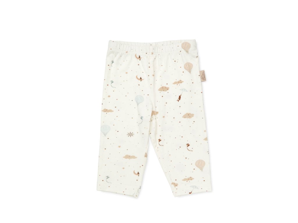Elastický pas zajišťuje pohodlné nošení bez tlačení a zároveň umožňuje dítěti volný pohyb při hraní, lezení i prvních krůčcích. Jemný potisk Dreamland dodává legínám elegantní a nadčasový vzhled, který se snadno kombinuje s body, tričky i svetříky.