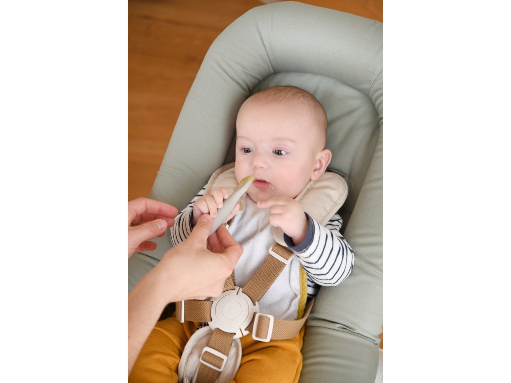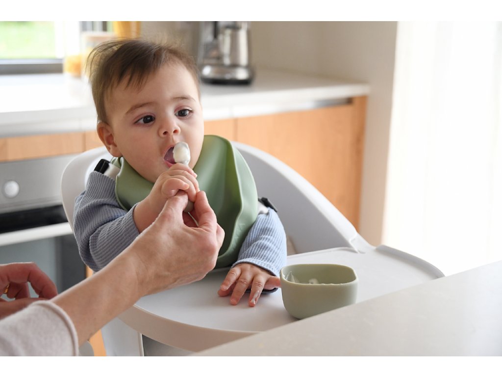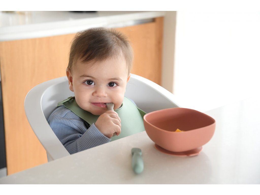 Krátká a ergonomicky tvarovaná rukojeť je ideální do malých dětských ruček a podporuje rozvoj samostatného stravování už od 6–8 měsíců. Jemný, pružný silikon je navíc bez BPA a šetrný k citlivým dásním i prvním zoubkům.