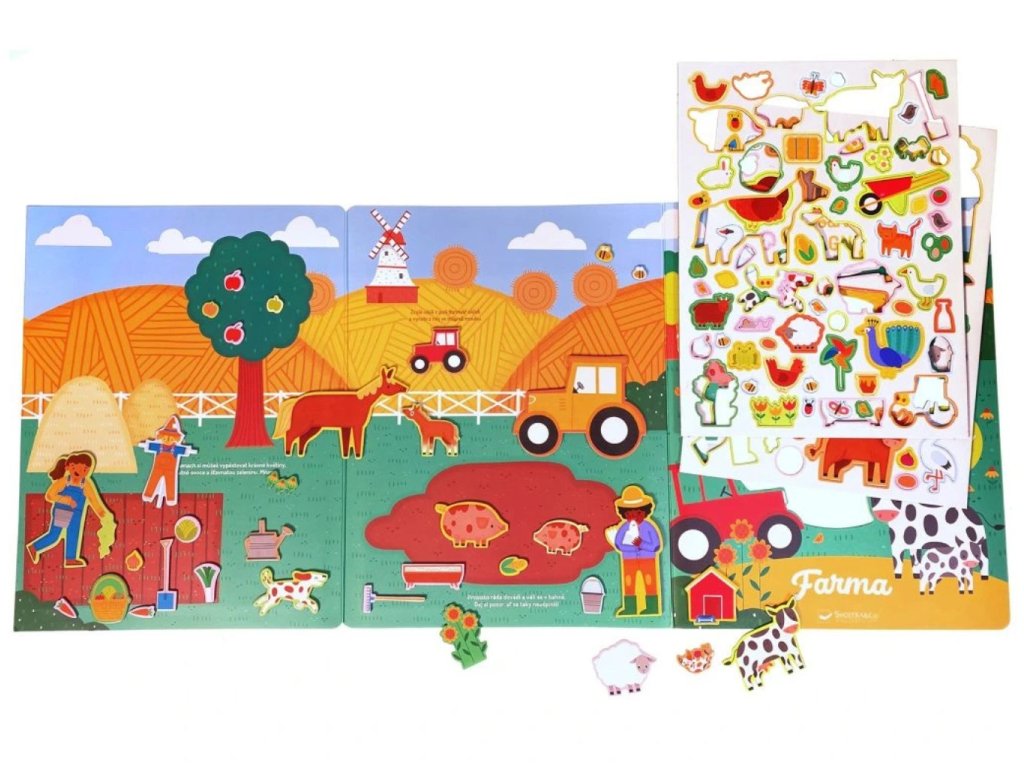 Zahraj si v této knize vlastní příběhy s více než 50 magnety zvířat z farmy! Navštiv farmu a domácí a hospodářská zvířata a zjisti o nich pár zajímavých informací. Čekají tě 2 velké scény k dokončení a přes 50 zvířecích magnetů pro umístění na stránky a vyprávění tvých příběhů. Kniha má po roztažení 300 x 690 mm.