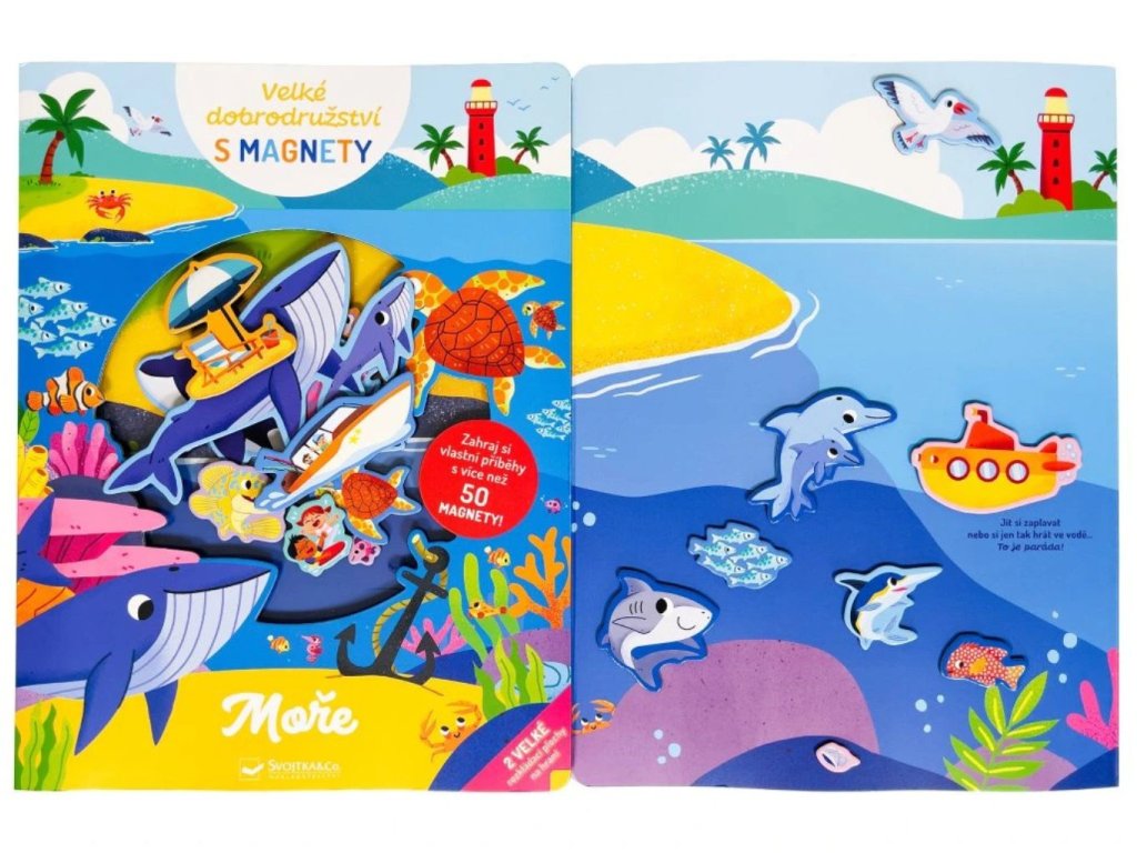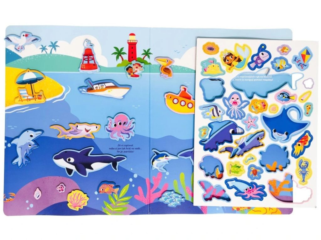 Vydej se do podmořského světa plného objevů! Tato velká rozkládací magnetická kniha měřící 300 × 920 mm tě zavede pod hladinu oceánu i na rušnou pláž. S více než 50 barevnými magnety si můžeš vytvořit vlastní mořská dobrodružství - potápěj se k vraku lodi, objevuj mořská zvířata nebo si postav hrad z písku. Magnety děti nejen pobaví, ale také rozvíjejí jejich jemnou motoriku, fantazii a slovní zásobu. Ideální dárek pro malé mořské objevitele!