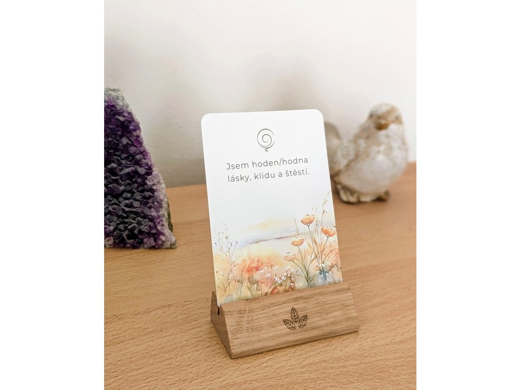 Afirmační karty fungují jako jemný průvodce vaší myslí – vyberte si jeden vzkaz denně, přečtěte si ho a nechte jeho poselství působit. Afirmace pomáhají posilovat pozitivní myšlení, snižují stres, podporují sebedůvěru a vedou k hlubší sebereflexi.
