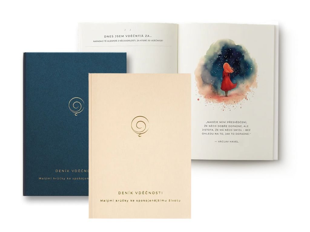 Deník vděčnosti je jednoduchý nástroj, který ti pomůže začít vnímat svět jinýma očima a vnést do života více radosti a spokojenosti. Každý den si do něj zapisuješ okamžiky, věci a lidi, za které cítíš vděčnost. Společně s odborníky vznikla i sada jemných cvičení a technik, které můžeš postupně přidávat do své každodenní rutiny – bez tlaku, jen malými krůčky.