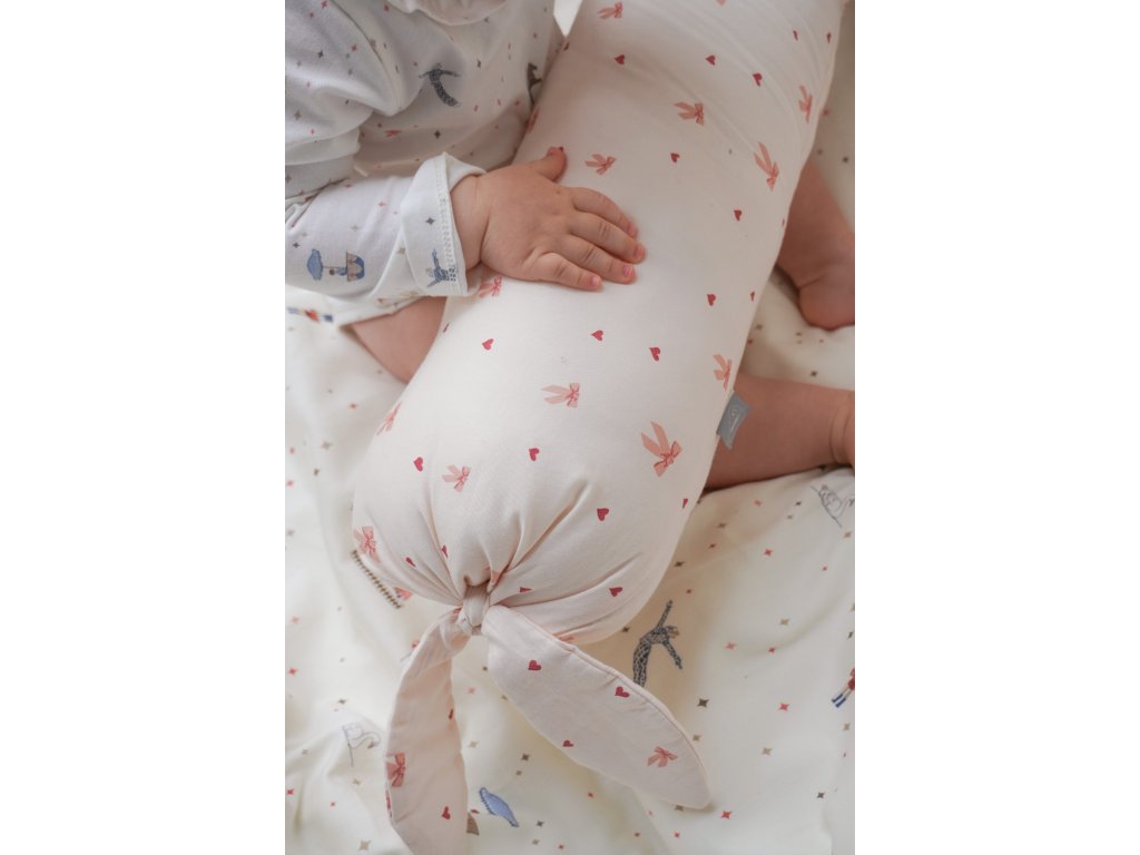 Díky svému tvaru a měkké výplni může sloužit také jako mazlící polštářek nebo opora při odpočinku. Je velmi univerzální a dlouhodobě využitelný – hodí se do postýlek pro miminka, ale i do juniorských postelí, případně jako útulný doplněk do dětského koutku.