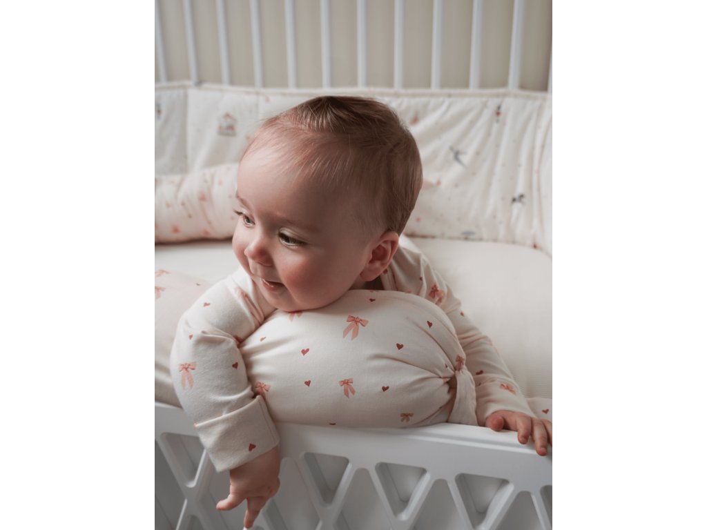 Had do postýlky Bed Snake od Cam Cam Copenhagen v jemném vzoru Bows dodá dětské postýlce nejen krásný vzhled, ale také pocit bezpečí a pohodlí. Je navržen tak, aby vytvořil měkký ochranný okraj kolem postýlky, který chrání dítě před nárazy do tvrdých částí postele.