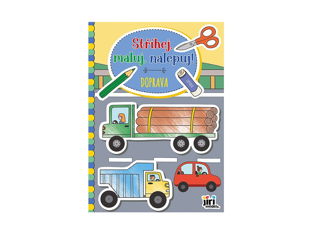 Kreativní tvoření pro malé fanoušky aut, vlaků a dalších dopravních prostředků. Stříhej, maluj, nalepuj! Doprava od Jiří Models přináší zábavné aktivity, které kombinují vybarvování, stříhání i lepení.