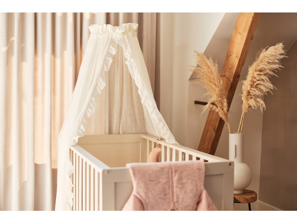 Držák je navržen speciálně pro nebesa o délce 155 cm, která na něm krásně splývají a vytvářejí jemnou ochranu před světlem, rušivými podněty i průvanem. Nebesa zároveň dodají postýlce pocit bezpečí a pohody, který miminka v prvních měsících života velmi oceňují.