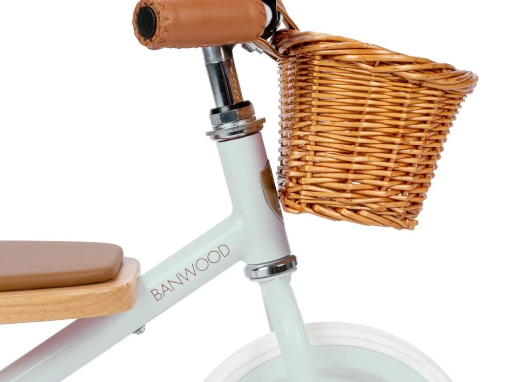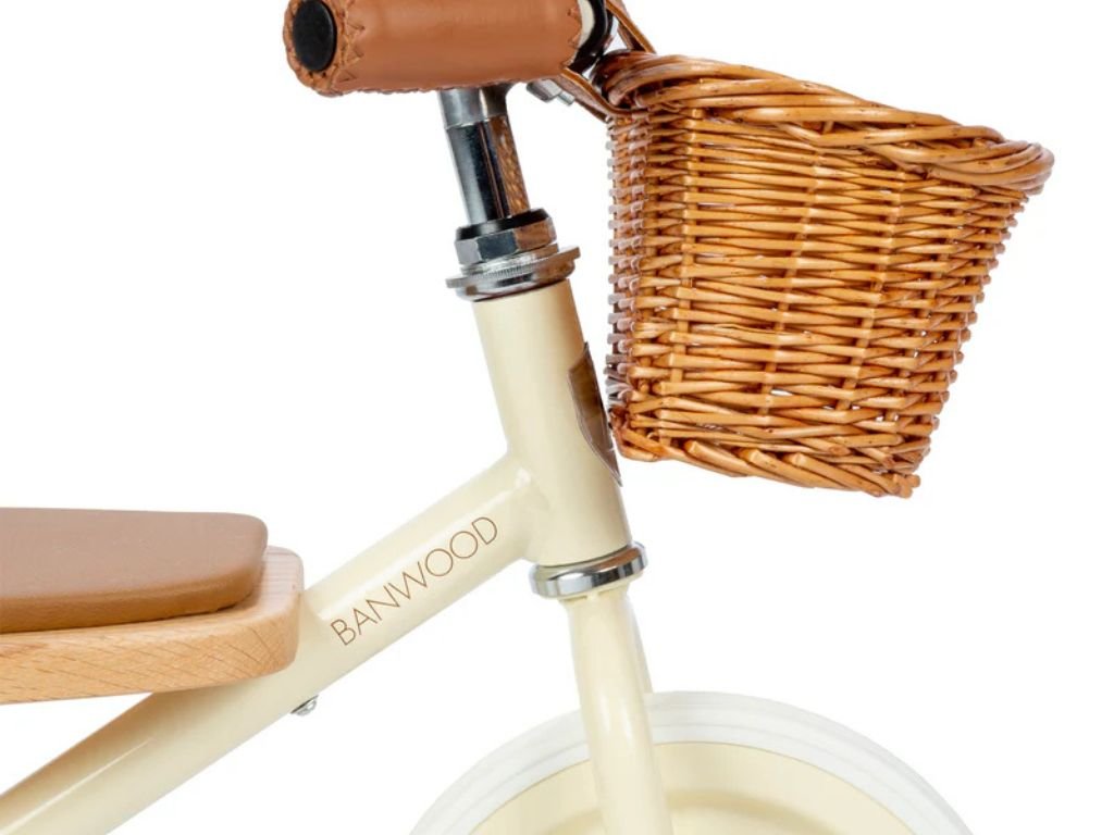 Tříkolka kombinuje nadčasový Banwood vintage design s kvalitním zpracováním – od měkce polstrovaného sedla po pevnou ocelovou konstrukci. Promyšlené detaily jako proutěný košík a zvonek přidávají funkčnost i radost z každodenních dobrodružství venku.