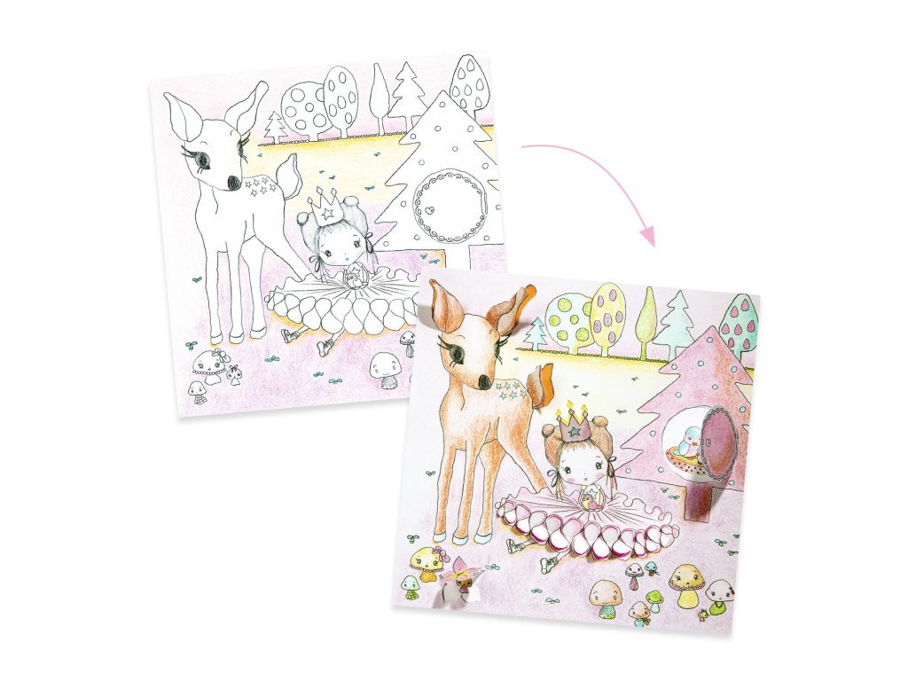 Nechte svou kreativitu volně plynout a vdechněte život obrázkům pomocí pastelek či barev. Díky unikátním 3D prvkům v podobě otevíracích okének získá váš výtvor nový rozměr a hloubku.