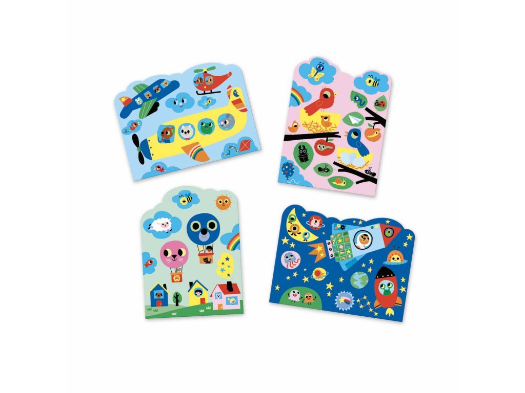 Sada vodních omalovánek DJECO obsahuje 4 obrázky, magickou tužku, hadřík.