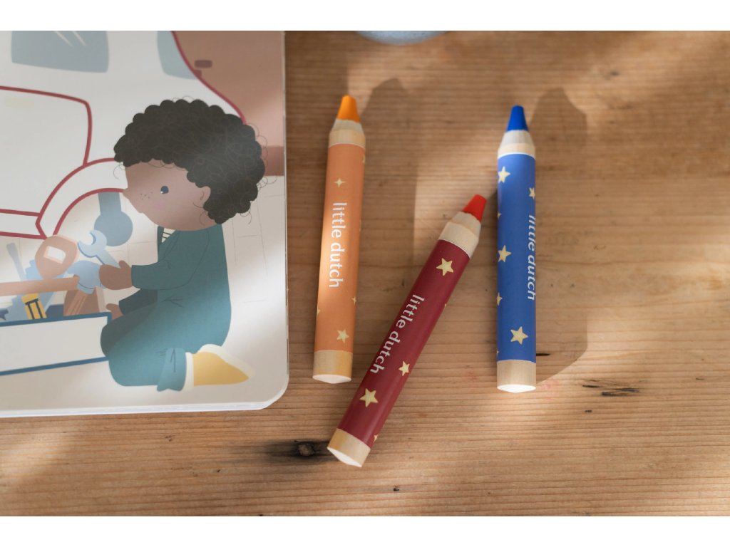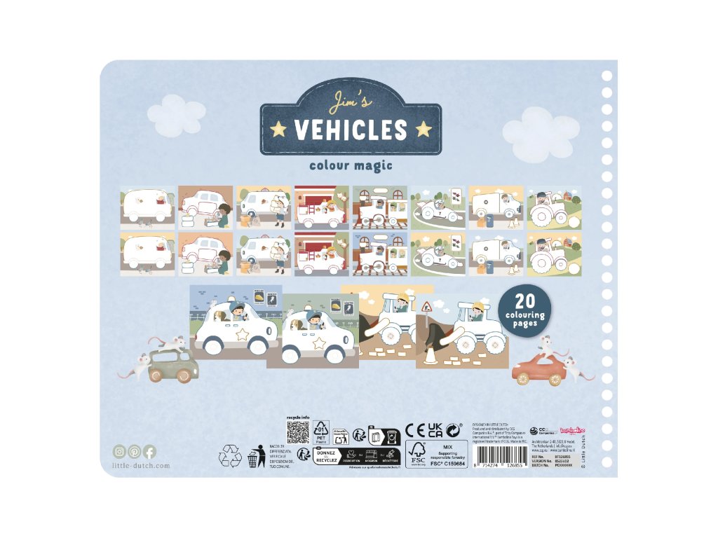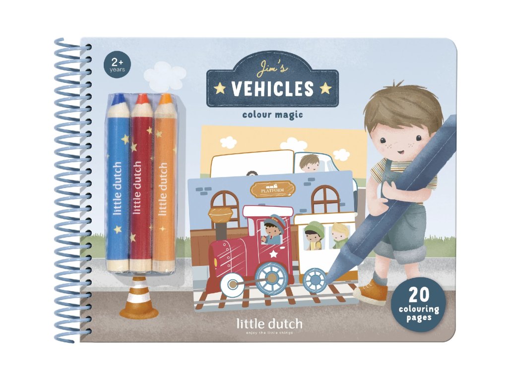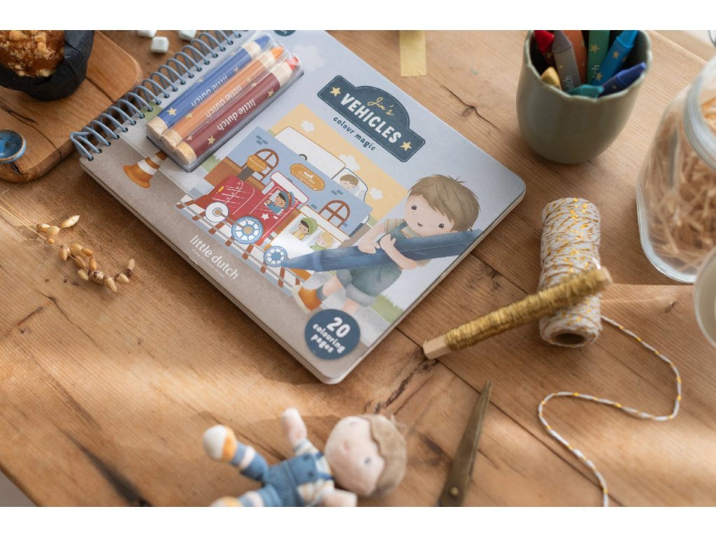 Objevte svět plný barev s omalovánkami Little Dutch – Doprava Jim, které zabaví malé i větší umělce doma i na cestách. Ilustrace s tématikou aut, vlaků či letadel vybízejí děti k tvoření a otevírají prostor pro fantazii. Součástí balení jsou tři ergonomicky tvarované pastelky, které se dobře drží i v malých ručičkách.
