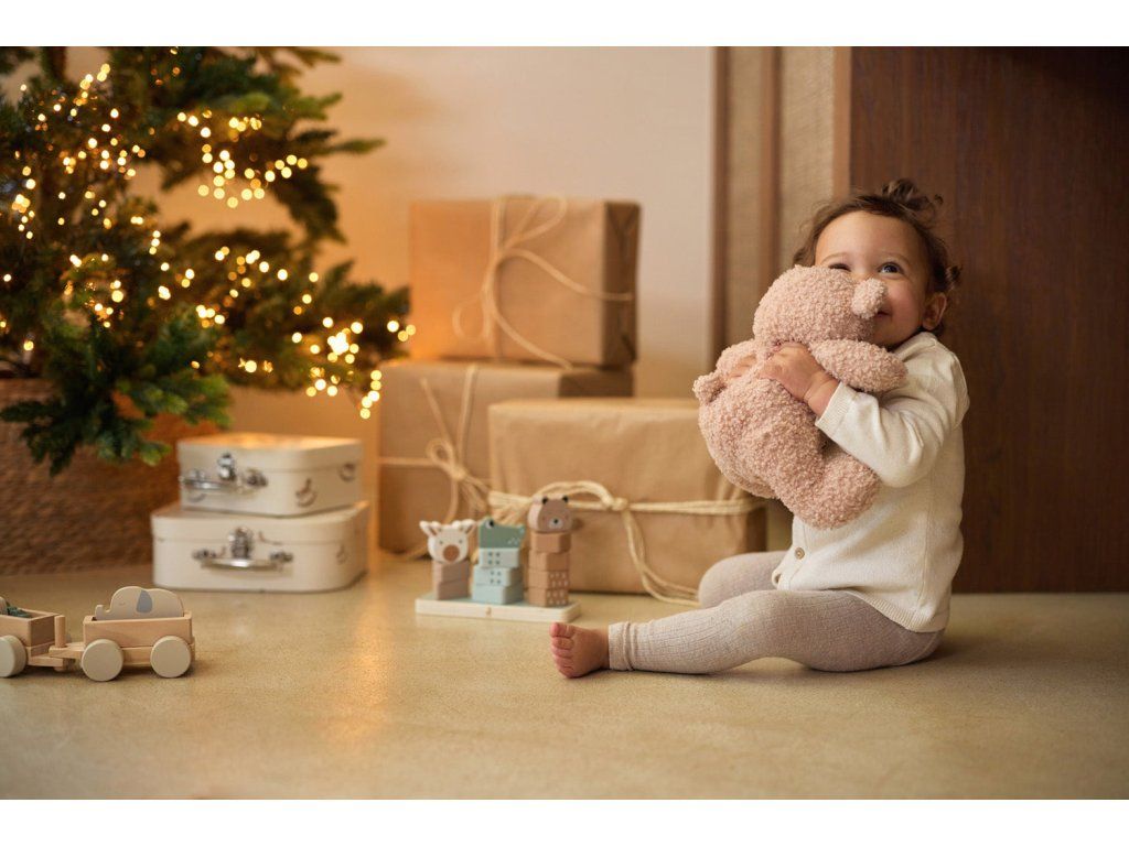 Hebký medvídek Jollein ve variantě Wild Rose si děti rychle zamilují. Příjemný buklé materiál je měkký na dotek a jako stvořený na mazlení před spaním – pomáhá navodit pocit bezpečí a klidu. Přes den se z něj snadno stane kamarád do dětských her a díky jemnému vzhledu vypadá krásně i jako doplněk v pokojíčku.