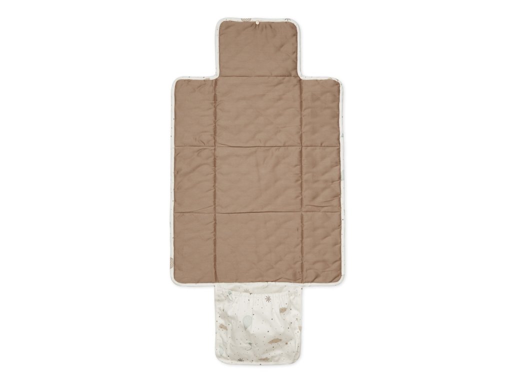 Podložku lze snadno složit jednou rukou do kompaktní velikosti, která se bez problémů vejde do přebalovací nebo tašky ke kočárku. Uvnitř se nachází praktická kapsa, do které se vejde plenka a mušelínová plena – ideální řešení pro rychlé přebalení bez nutnosti vytahovat celou tašku.