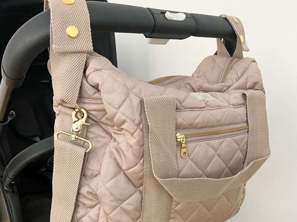 Díky pevným uším, nastavitelnému ramennímu popruhu a dvěma kratším popruhům pro uchycení ke kočárku máte vždy maximální flexibilitu nošení. Vnitřní uspořádání je promyšlené do detailu – elastické kapsy pomohou udržet pořádek, nechybí kapsa na láhev ani zipové kapsy uvnitř i vně tašky na drobnosti, které potřebujete mít rychle po ruce.