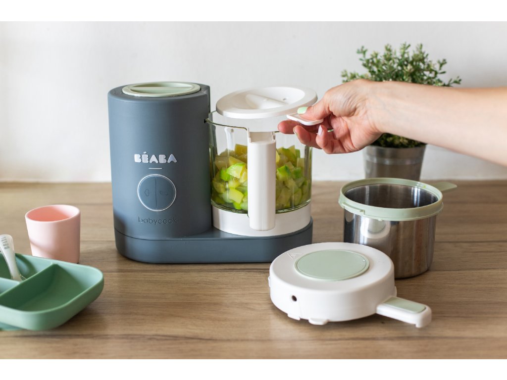 Skvělou pomoc při každodenní přípravě dětského jídla představuje Béaba Babycook Neo – parní hrnec a mixér v jednom. Pokrmy připravuje šetrně v páře, takže suroviny si zachovají chuť i živiny, a po dovaření je jednoduše rozmixujete na jemnou kaši nebo hrubší strukturu s kousky – přesně podle toho, v jaké fázi je vaše dítě.