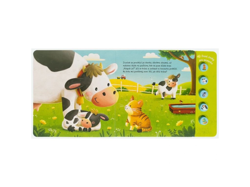 Vydej se spolu s kocourkem na průzkumnou procházku po statku a seznam se s různými zvířaty, která tam žijí. Poslechni si kokrhání kohouta, který vítá nový den, veselé bučení krávy a hýkání oslíka. Zvířátka ze statku už se na tebe těší! Díky vystouplým gumovým tlačítkům a roztomilým ilustracím s jednoduchým příběhem je kniha vhodná i pro nejmenší děti.