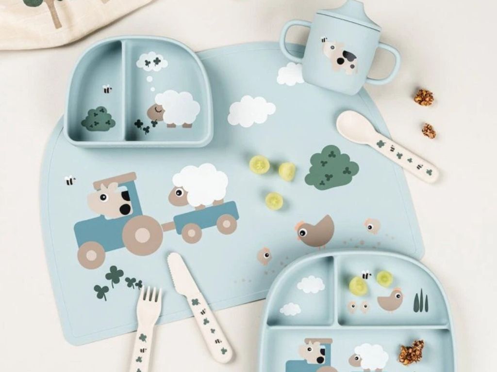 Silikonové prostírání Tiny Farm modré