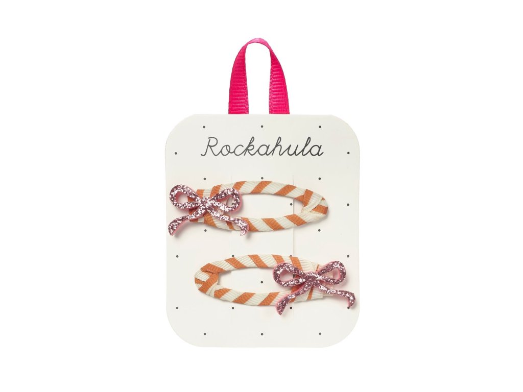 Naše třpytivé mašličkové sponky jsou jednoduše „bow-tiful“! Každá růžová mašlička se krásně leskne a je posazená na praktické zacvakávací sponce, která je obalená proužkovanou stuhou. Výsledek je hravý, stylový a naprosto dokonalý v růžové.