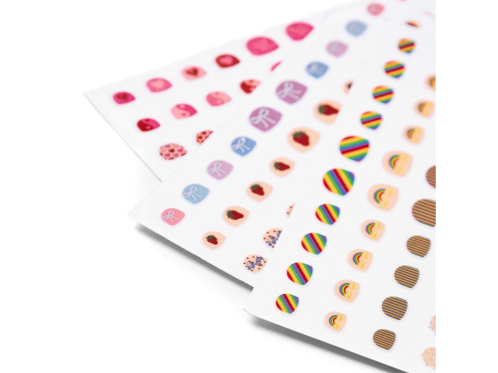 Použití je maximálně snadné: samolepku stačí sloupnout a přiložit na nehet – bez potřeby laku, bez čekání na zaschnutí a bez odlakovače. Díky tomu jsou ideální i na cesty, na návštěvy, na narozeninové oslavy nebo pro domácí „kosmetický salon“. Je to drobnost, která často udělá překvapivě velkou radost a podporuje dětskou fantazii i jemnou motoriku.