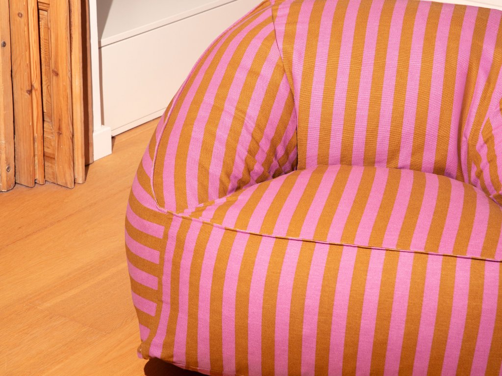 Jeho tvar inspirovaný křesílkem vybízí k tomu se zabořit, otevřít knihu, pustit oblíbenou hudbu… nebo si jednoduše dovolit na chvíli vypnout. Ziggy se dokonale hodí do obývacího pokoje, čtecího koutku, ložnice nebo pracovny. Nadčasové pruhy z něj dělají statement piece – výrazný doplněk, který oživí každý interiér.
