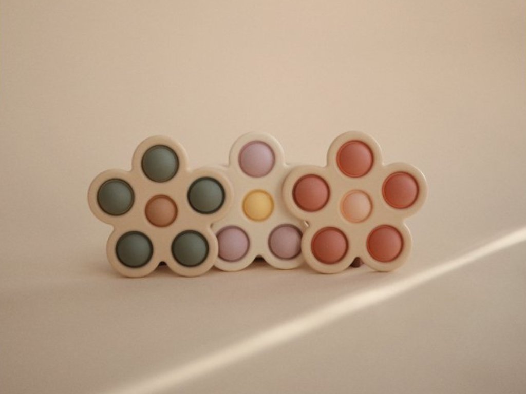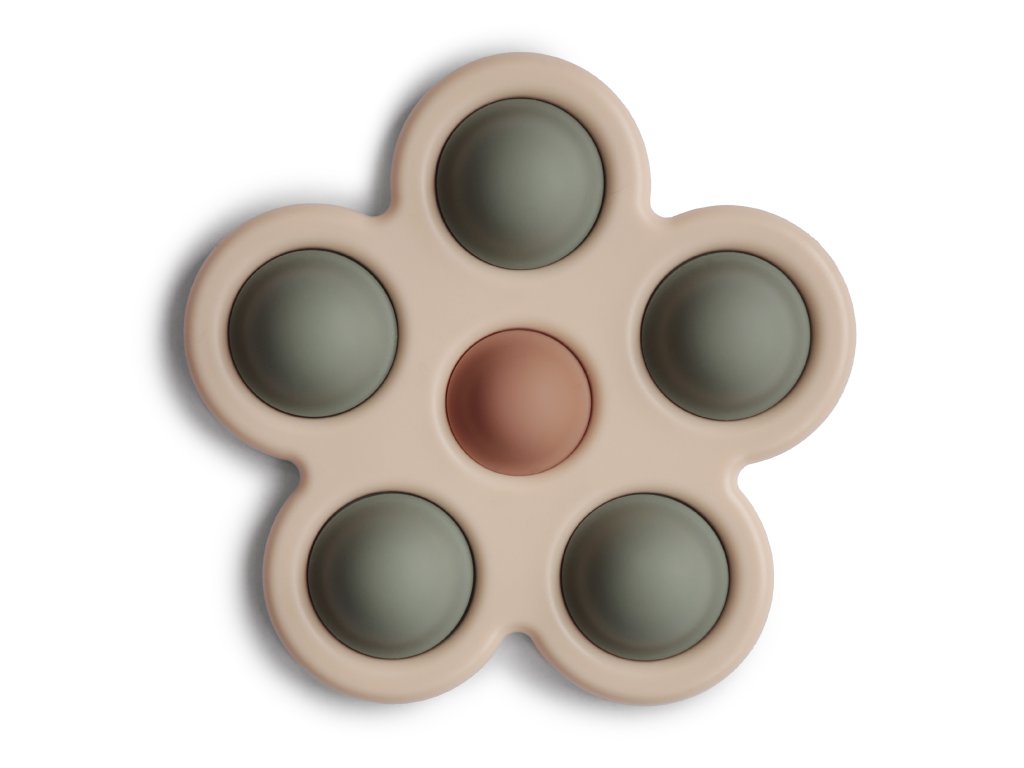Mushie silikonová hračka Pop-It Flower Dried Thyme/Natural/Shifting Sand